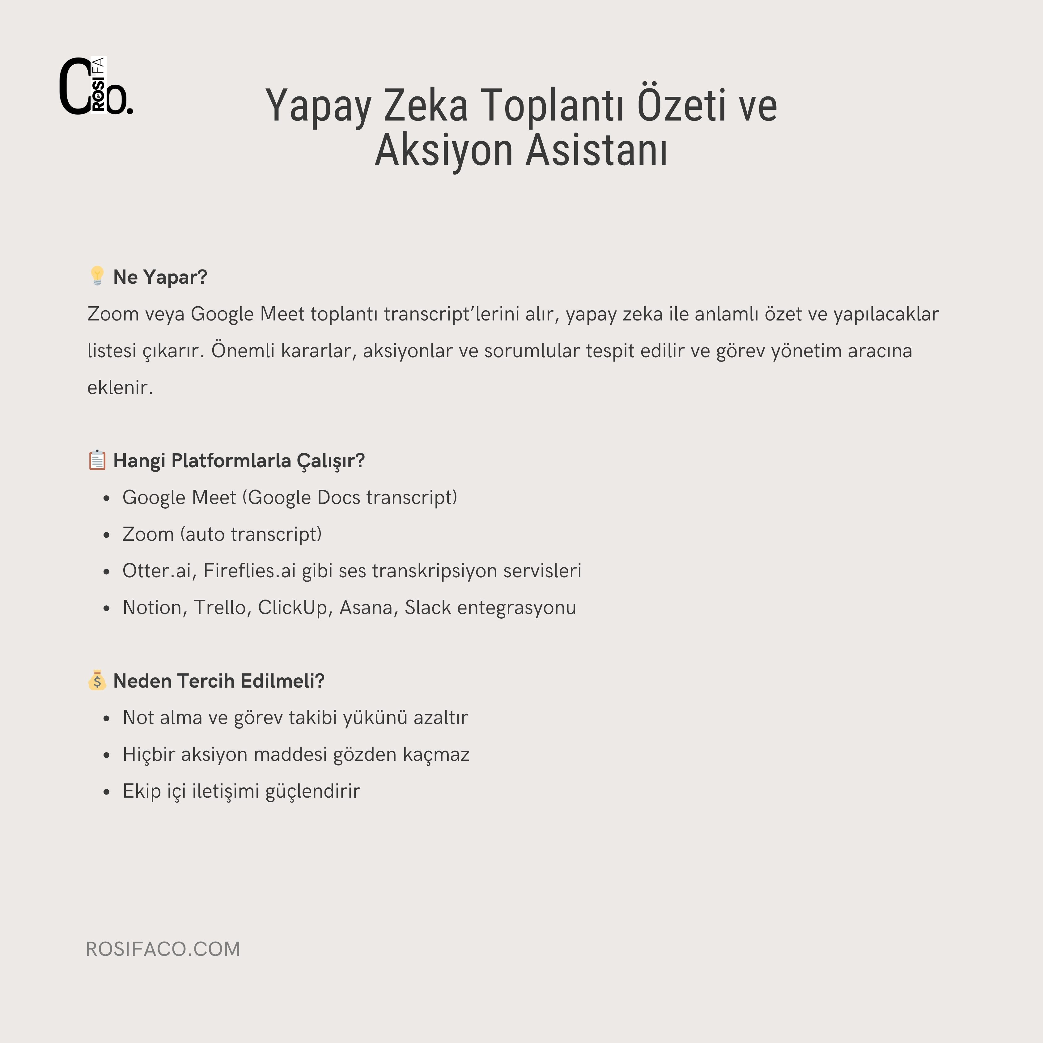Yapay Zeka Toplantı Özeti ve Aksiyon Asistanı
