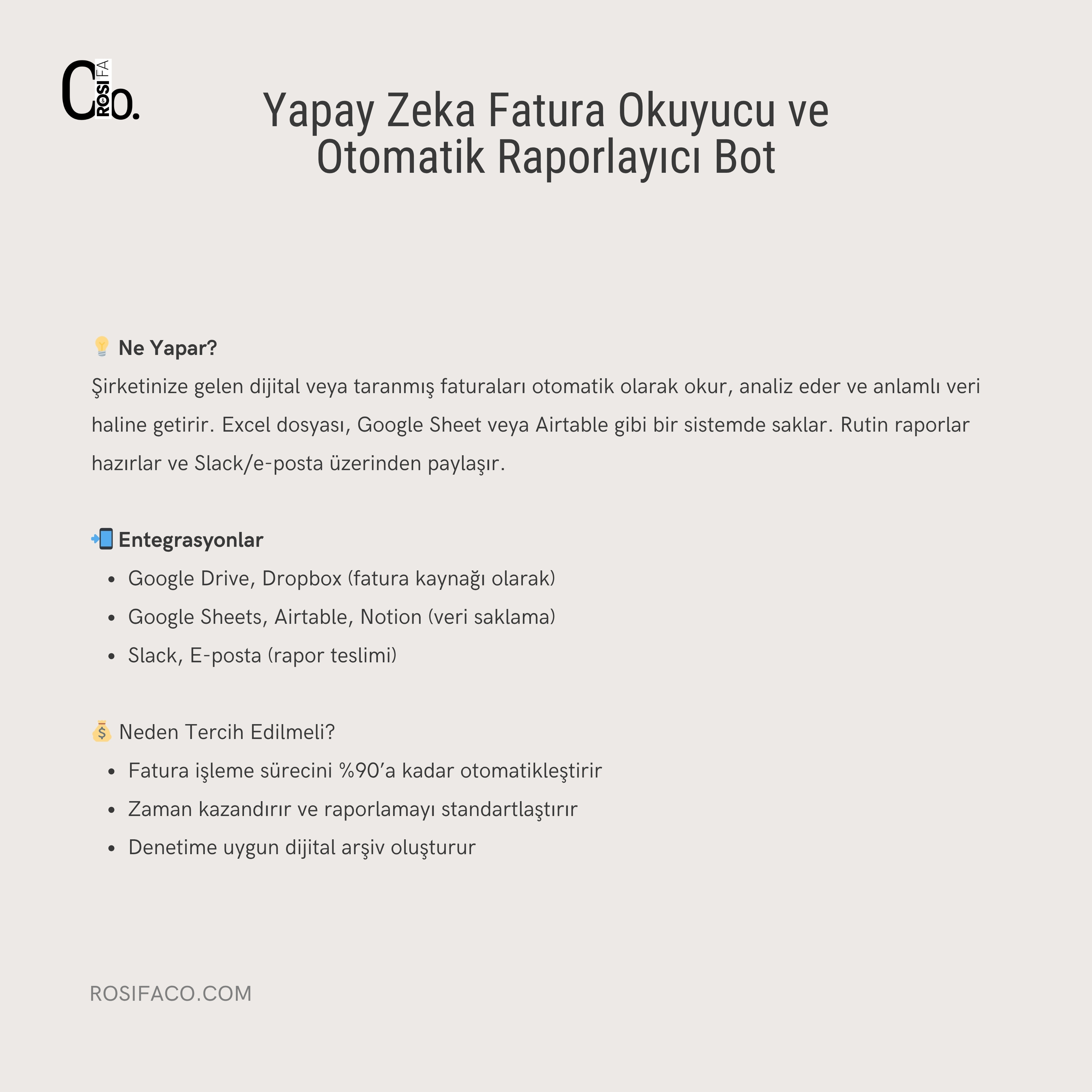 Yapay Zeka Fatura Okuyucu ve Otomatik Raporlayıcı Bot